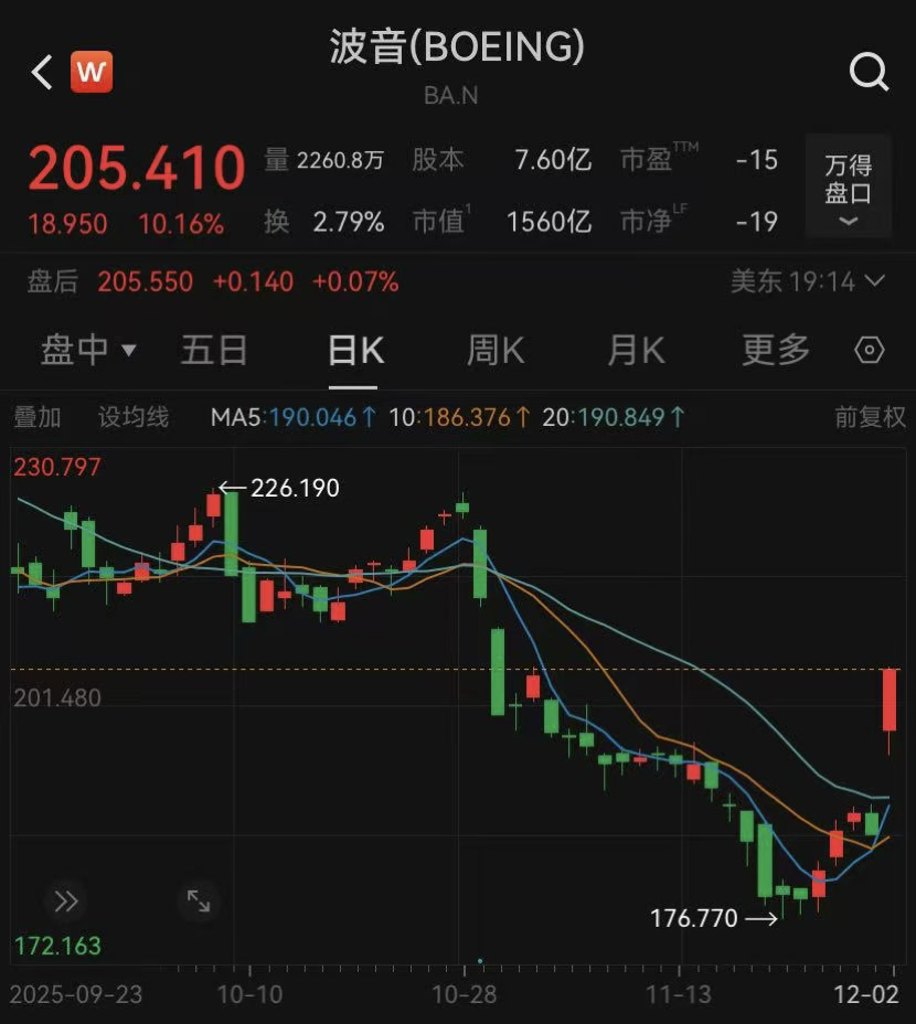 其余焦点个股方面,波音大涨超10%,创4月份以来最大单日涨幅。消息面上,公司预计明年将恢复现金流。波音方面表示,受商用飞机交付量增加的提振,预计2026年现金流将为正。这将是波音公司自2023年以来首次产生正现金流。