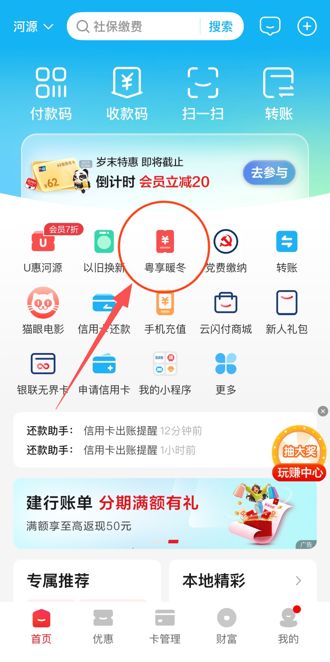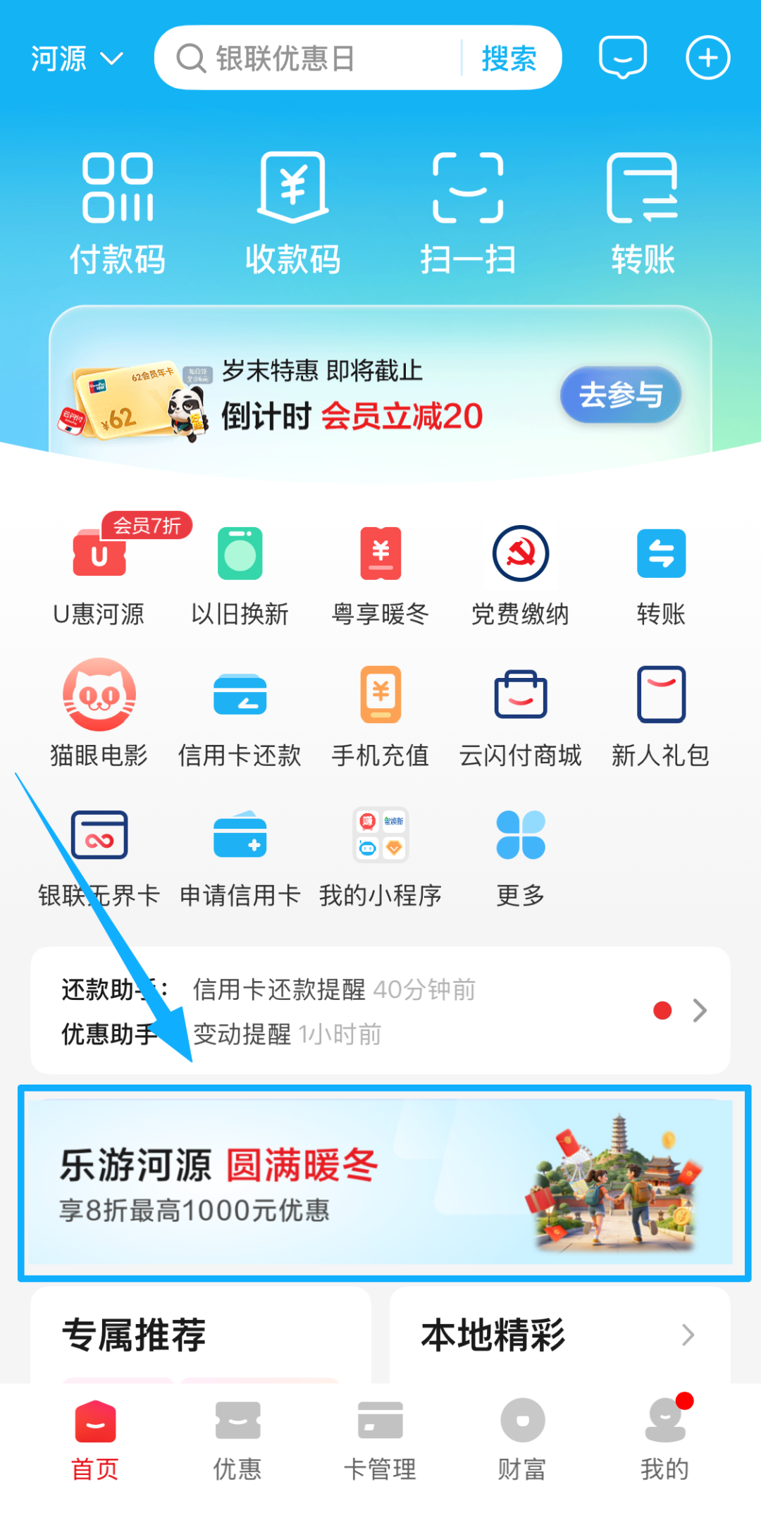 打开云闪付APP(定位河源)