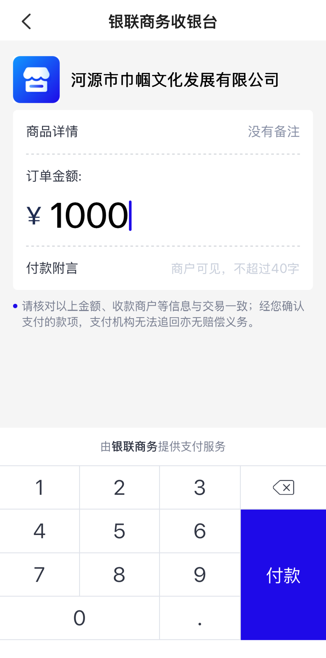 输入付款金额完成支付