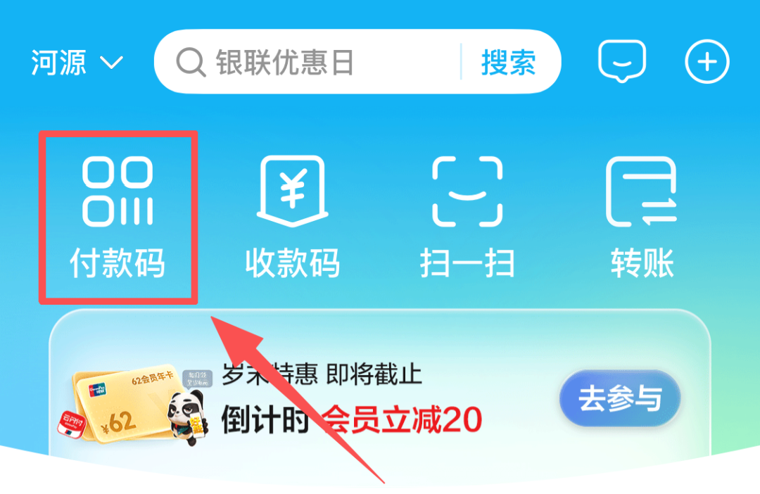打开云闪付APP“扫一扫”